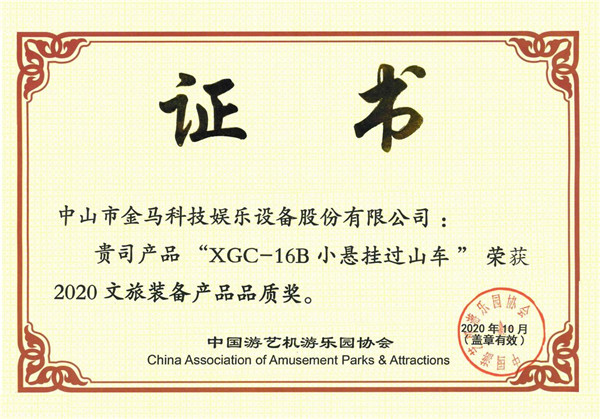 同時,“JL-20A激流勇進(jìn)”和“XGC-16B小懸掛過山車”分獲“文旅裝備產(chǎn)品創(chuàng)新獎”和“文旅裝備產(chǎn)品品質(zhì)獎”。