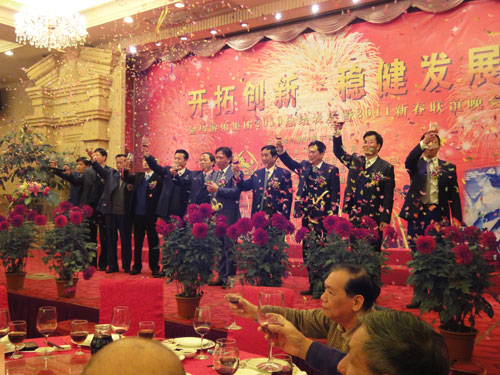 金虎奮蹄開錦繡,玉兔迎春展宏圖;辭舊迎新齊相聚,金馬歡慶喜迎春。2011年2月14日晚,張溪海港城宴會大廳燈火輝煌,喜氣洋洋,金馬公司“開拓創(chuàng)新,穩(wěn)健發(fā)展”2010年總結表彰暨2011年新春聯(lián)誼晚會在此隆重舉行。