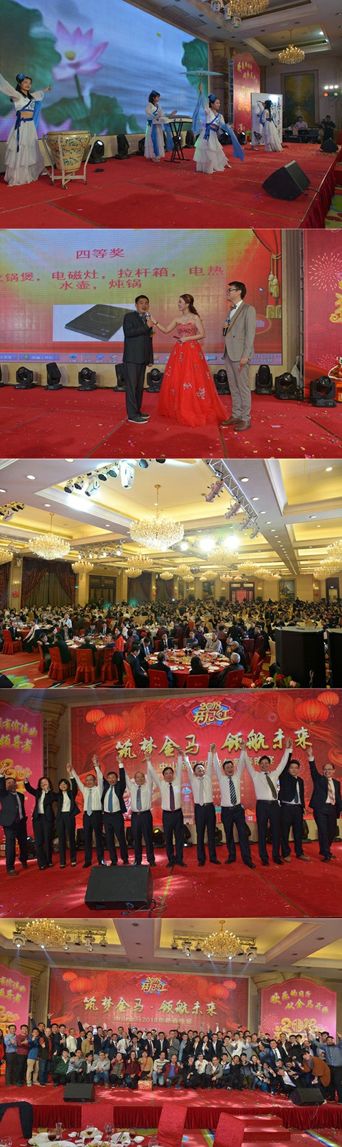 晚會(huì)現(xiàn)場(chǎng),同行云集,燈光璀璨,激情四射的歌舞表演,催人奮進(jìn)的年度表彰、扣人心弦的幸運(yùn)抽獎(jiǎng)、倍感溫暖的節(jié)日慰問(wèn)。歡歌笑語(yǔ)中,團(tuán)結(jié)、拼搏、創(chuàng)新的金馬人們展示了金馬團(tuán)隊(duì)積極向上的精神風(fēng)貌,增強(qiáng)了金馬人的凝聚力和歸屬感,弘揚(yáng)了金馬企業(yè)精神。就公司在2017年所取得的成績(jī),金馬公司鄧志毅董事長(zhǎng)在晚會(huì)致辭中表示,“金馬的輝煌成績(jī)離不開(kāi)今天金馬人的團(tuán)結(jié)和努力,2017年是金馬公司保持良好發(fā)展勢(shì)頭的一年,是拓展業(yè)務(wù)、團(tuán)隊(duì)建設(shè)、技術(shù)創(chuàng)新取得驕人成績(jī)的一年,是金馬全體員工迎接挑戰(zhàn)、經(jīng)受考驗(yàn)、克服困難、出色完成規(guī)劃的一年。在新的一年來(lái)臨之際,我們更應(yīng)該卯足干勁、攜手同心、再創(chuàng)金馬輝煌”!
