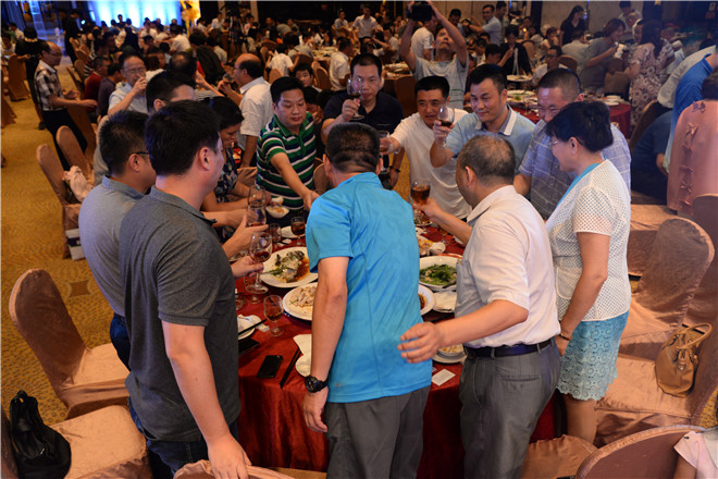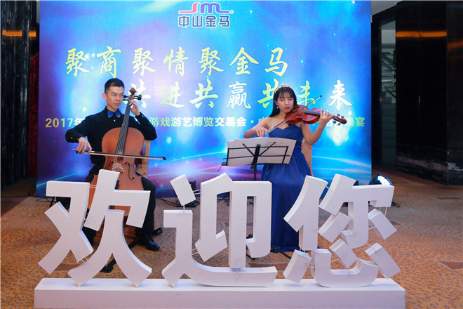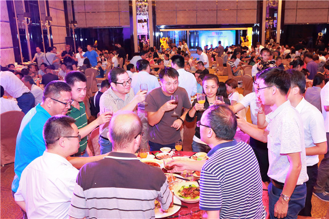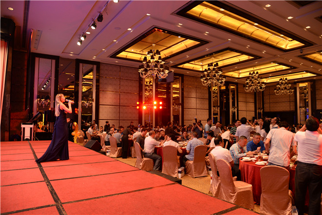 金色八月,熱情似火,有朋自遠(yuǎn)方來,逢盛事喜相聚。為了對(duì)即將召開的第十屆中國(中山)國際游戲游藝博覽交易會(huì)表示熱烈的祝賀,以及對(duì)多年來一直關(guān)心、支持金馬健康發(fā)展的合作伙伴和嘉賓表示誠摯的歡迎和衷心的感謝,8月10日晚,乘著行業(yè)盛會(huì)的東風(fēng),公司在中山喜來登酒店舉行了盛大的客戶招待晚宴。國內(nèi)外新來客商、嘉賓、媒體記者200余人應(yīng)邀出席,與公司管理層及員工代表們共同感受了一場精彩紛呈的盛宴,度過了一個(gè)充滿歡樂與活力的難忘之夜。