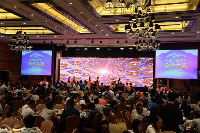 晚宴現(xiàn)場,公司全新拍攝的企業(yè)形象片正式對(duì)外展示,以緊跟時(shí)代腳步與公司發(fā)展軌跡的內(nèi)容,向眾客商、嘉賓及媒體呈現(xiàn)了一個(gè)突飛猛進(jìn)的金馬形象。在對(duì)2016年公司研發(fā)的新產(chǎn)品集錦進(jìn)行回顧時(shí),眾人更是生動(dòng)形象地看到了一個(gè)實(shí)力金馬,正如劉喜旺總經(jīng)理的致辭所言“中山金馬追求又好又快的發(fā)展,追求厚積薄發(fā)式的飛躍產(chǎn)品厚積薄發(fā),量的積累已經(jīng)達(dá)到了質(zhì)的突變”。宴會(huì)上,滿堂燈光璀璨奪目,鮮花氣球五彩繽紛,來自各地的客商、嘉賓熱烈交談,酒斟交錯(cuò)間歡聲笑語不斷,席間還伴以助興歌舞與魔術(shù)節(jié)目、幸運(yùn)抽獎(jiǎng)游戲、客戶互動(dòng)采訪環(huán)節(jié)等,一種愉悅、和樂的氛圍油然而生。近三個(gè)小時(shí)的歡聚后,晚宴在一場《越來越好》歌伴舞節(jié)目的祝福和憧憬中慢慢降下了帷幕。