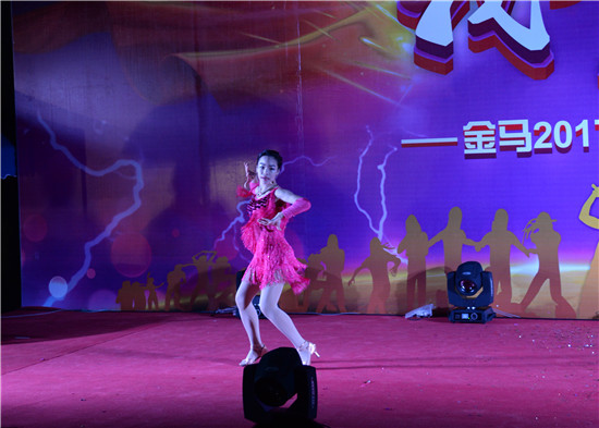 晚會在當(dāng)日18:30準(zhǔn)時開始,近300名金馬人有序齊聚臺下,一卸工作的疲累,放松精神,歡樂暢談,縱享小食。一開始是前期迎春文體系列活動的頒獎表彰環(huán)節(jié),籃球、羽毛球、桌球、乒乓球、越野、攀巖等各項活動獲獎代表分別從頒獎領(lǐng)導(dǎo)手中接過獎狀和獎金,喜悅之情溢于言表。隨后,文藝匯演正式開始,瞬時音樂響起,燈光閃爍,全場目光齊刷刷地射向舞臺。喜慶洋洋的“恭喜發(fā)財”率先登臺,來自機(jī)械車間的6名員工將濃濃的年味散播至現(xiàn)場每一個角落;開料車間創(chuàng)意策劃編排的“大王叫我來巡山”舞蹈完美融合生肖吉祥物寓意,打造出一個“眾猴拱雞”的趣味舞臺;來自玻璃鋼車間王曉玲的一首“映山紅”以其游刃有余的高聲調(diào)震撼全場;精益部的“ 鞋釘”小品雖僅2人登臺,卻憑借生動形象的人物塑造與演出征服了臺下評委與觀眾... ...匯演中場雖時有毛毛細(xì)雨拂起,但像雨像霧又像風(fēng)的感覺為演出現(xiàn)場平添了一絲韻味,增添了一份浪漫的氣息,整場表演更是可謂精彩紛呈、引人入勝。