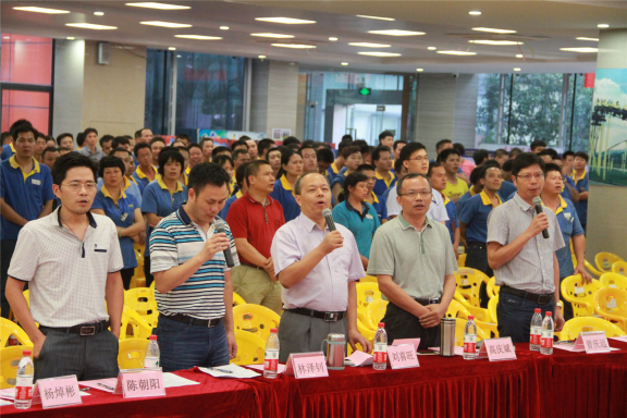 2016年7月30日,精益生產(chǎn)第三年度總結暨表彰大會在公司飯?zhí)寐≈嘏e行。公司高管劉喜旺總經(jīng)理、曾慶遠副總經(jīng)理、高慶斌副總經(jīng)理、陳朝陽副總經(jīng)理和林澤釗副總經(jīng)理出席了會議并擔任評委。