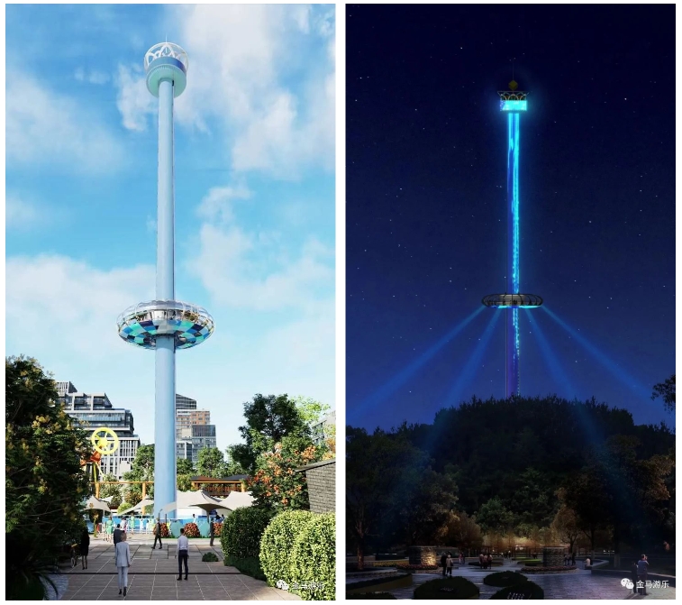 啟動會上,金馬游樂公司代表向與會領(lǐng)導(dǎo)嘉賓作公司及項目基本情況介紹,“星空之環(huán)”項目是金馬游樂結(jié)合當(dāng)前市場需求自主創(chuàng)新研發(fā)的新一代地標(biāo)型觀光類設(shè)備,產(chǎn)品采用創(chuàng)新制作工藝,突破了傳統(tǒng)觀光類產(chǎn)品因工藝原因造型相對單一的限制,造型更加美觀;同時,該產(chǎn)品充分結(jié)合了國內(nèi)外觀光類產(chǎn)品優(yōu)點,創(chuàng)造出單次可容納100人的大空間觀光座艙,并同時具備升降和旋轉(zhuǎn)功能,適合全年齡段乘客乘坐,乘客在乘坐時可自由走動,盡情飽覽不同方位景觀。此外,產(chǎn)品能結(jié)合城市公園、景區(qū)等文旅項目進行獨特的外觀包裝設(shè)計,采用高密度LED點陣布置燈光系統(tǒng),可以對燈光顯示進行編程,并能夠與周邊環(huán)境互動,更能契合場所主題,能作為在地文旅地標(biāo)拉動在地文旅消費。