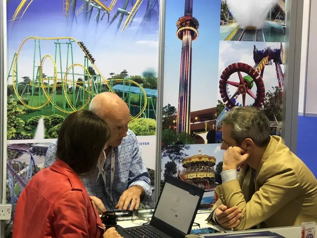 此次迪拜展是新冠疫情以來,金馬游樂首次參與的國際展會(huì)。作為國際頂級(jí)連鎖主題樂園的游樂設(shè)備供應(yīng)商,金馬游樂以“中國制造”的海外代言人形象亮相國際展會(huì)。此次展會(huì),由金馬游樂歐洲團(tuán)隊(duì)攜LSM電磁彈射過山車、百米摩天輪、影視飛行塔等多個(gè)系列創(chuàng)新產(chǎn)品亮相,展位吸引了中東、北非地區(qū)多國客商朋友前來咨詢交流、洽談合作,現(xiàn)場氣氛熱烈。