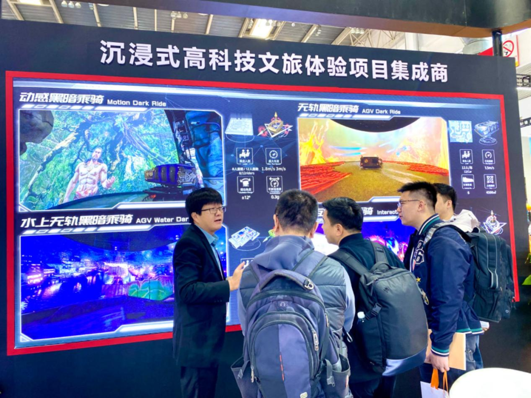在金馬文旅科技展區(qū),集中展出了飛行影院、動感黑暗乘騎、影視過山車等八大系列虛擬沉浸式產(chǎn)品的最新落地案例,一眾客商紛紛走進(jìn)展區(qū),了解交流從創(chuàng)意策劃、研發(fā)制造到安裝調(diào)試背后的創(chuàng)新突破故事,專家營銷團(tuán)隊(duì)以專業(yè)知識為客商解答各類售前問題,深入探討滿足客商需求的最佳解決方案。