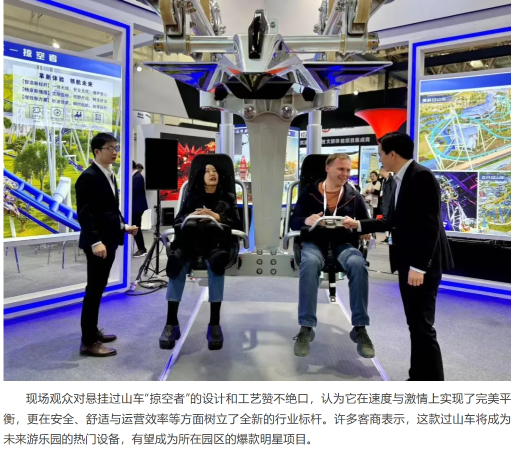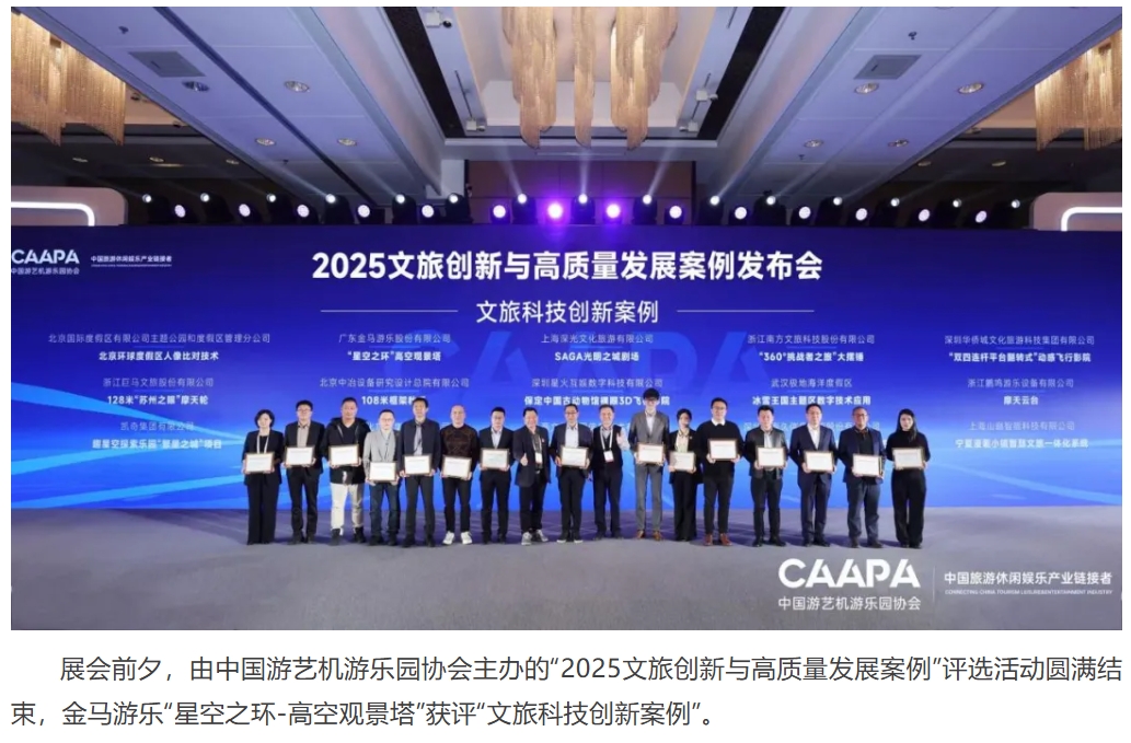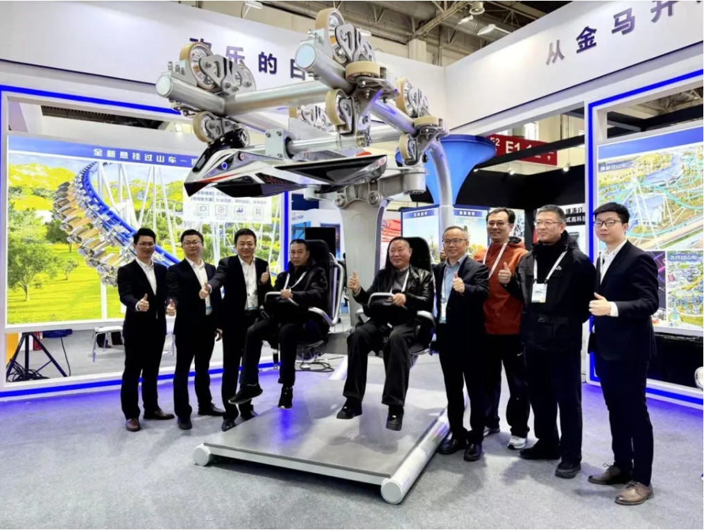 3月19日,2025 CAAPA北京展盛大開(kāi)幕,展會(huì)首日,金馬游樂(lè)舉辦了主題為“革新體驗(yàn),領(lǐng)航未來(lái)”的新品揭幕活動(dòng),為全新懸掛過(guò)山車“掠空者”揭開(kāi)神秘面紗?;顒?dòng)現(xiàn)場(chǎng)人頭攢動(dòng),氣氛熱烈,中國(guó)游藝機(jī)游樂(lè)園協(xié)會(huì)會(huì)長(zhǎng)姚軍、副會(huì)長(zhǎng)戎志剛、TEA(主題娛樂(lè)協(xié)會(huì))董事會(huì)主席Matt Barton、印度游協(xié)會(huì)長(zhǎng)VGP Ravidas等行業(yè)重要領(lǐng)導(dǎo)和嘉賓齊聚一堂,共同為這款過(guò)山車揭幕。他們的到來(lái)不僅為活動(dòng)增添了光彩,也彰顯了金馬游樂(lè)在行業(yè)內(nèi)的強(qiáng)大影響力。