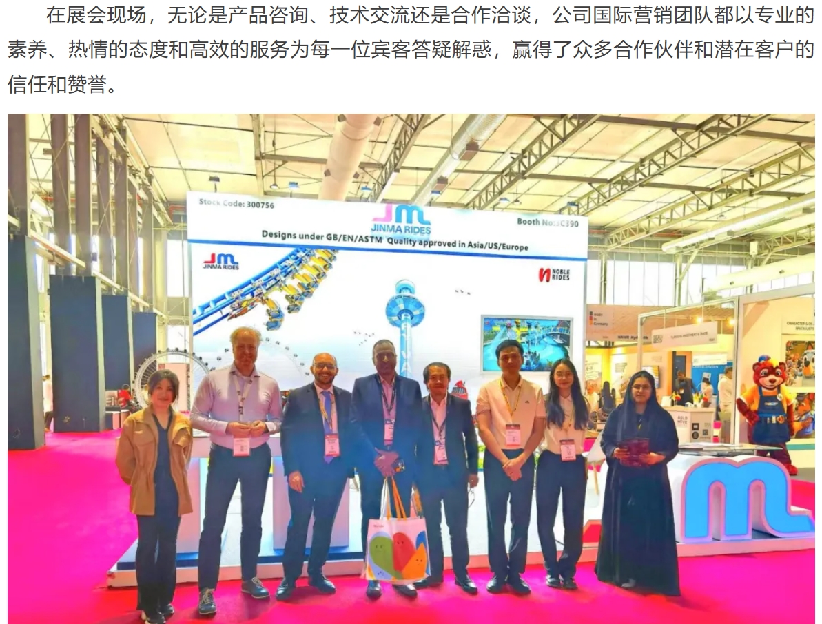 中東市場具有獨(dú)特文化和消費(fèi)習(xí)慣,公司將根據(jù)市場特點(diǎn)進(jìn)一步優(yōu)化產(chǎn)品設(shè)計(jì)和服務(wù)方案,以更加貼合當(dāng)?shù)匦枨蟮挠螛费b備產(chǎn)品和解決方案力求取得更大突破,持續(xù)深耕中東市場。同時(shí),公司也將以此為契機(jī),進(jìn)一步加大全球市場拓展力度,期待與全球客戶攜手合作,共同開創(chuàng)游樂裝備行業(yè)的美好未來。