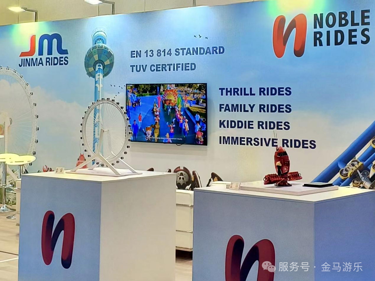 展臺(tái)現(xiàn)場(chǎng),金馬游樂及旗下瑞士子公司Noble Rides的多款創(chuàng)新產(chǎn)品成為全場(chǎng)焦點(diǎn):為德國客戶量身打造的移動(dòng)懸掛過山車、符合國際安全標(biāo)準(zhǔn)的全景大橋廂摩天輪、面向家庭游樂市場(chǎng)的機(jī)甲互動(dòng)系列等,吸引了大量專業(yè)觀眾駐足體驗(yàn)。值得一提的是,金馬游樂在歐洲的首套過山車項(xiàng)目計(jì)劃于2026年完成交付。