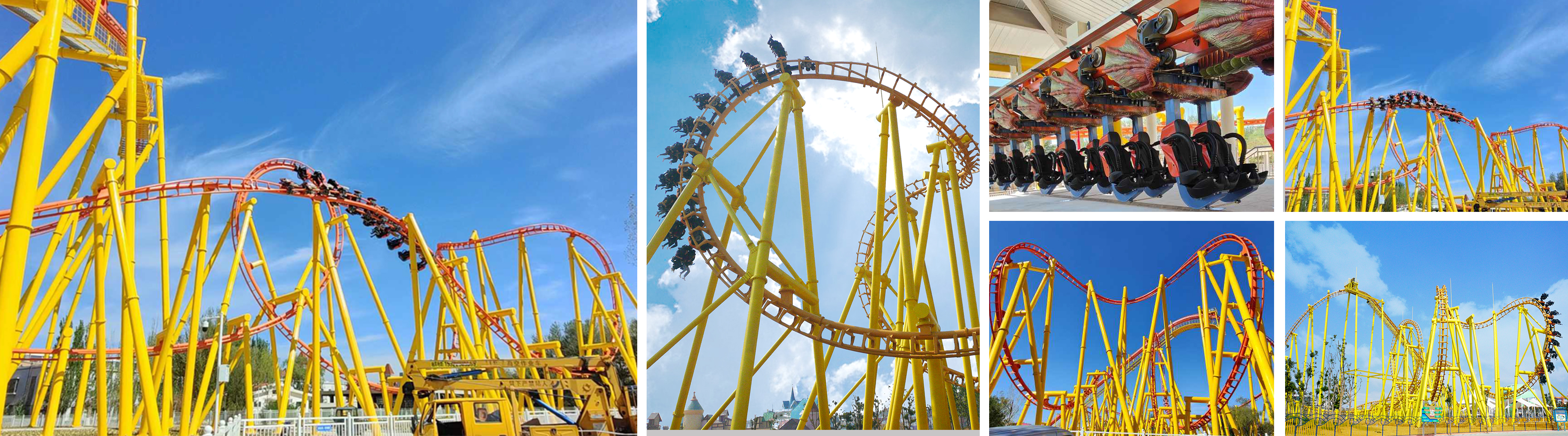 懸掛過山車的列車座椅懸掛于軌道下方,乘客懸空而坐,增加體驗刺激度。列車經(jīng)由動力提升到軌道最高端后,轉(zhuǎn)為沿軌道自由高速滑行,乘客坐于座椅上時盡情地享受失重、倒轉(zhuǎn)和離心的強烈感覺。列車外觀可根據(jù)樂園特色定制,幫助樂園打造專屬特色。