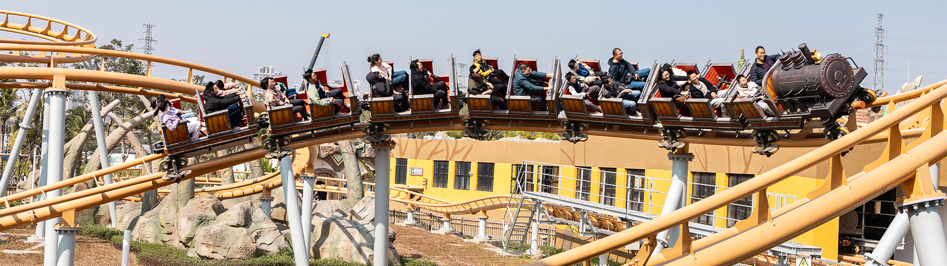 礦山車模仿古代礦山列車運(yùn)行模式,采用仿古式的火車造型,游客仿佛置身于礦山現(xiàn)場(chǎng)。全程路軌設(shè)有兩個(gè)提升段,配合先進(jìn)變軌技術(shù)、減震膠與柔和的永磁制動(dòng),為乘客乘坐帶來舒適靜謐的體驗(yàn)。同時(shí)獨(dú)特的壓腹式壓杠結(jié)構(gòu),確保包括?度1.1m以上兒童可被有效束縛,增大游客受眾范圍。