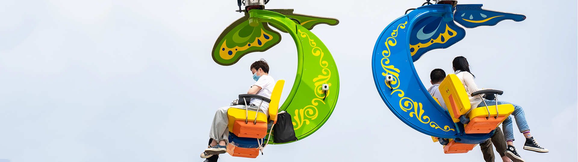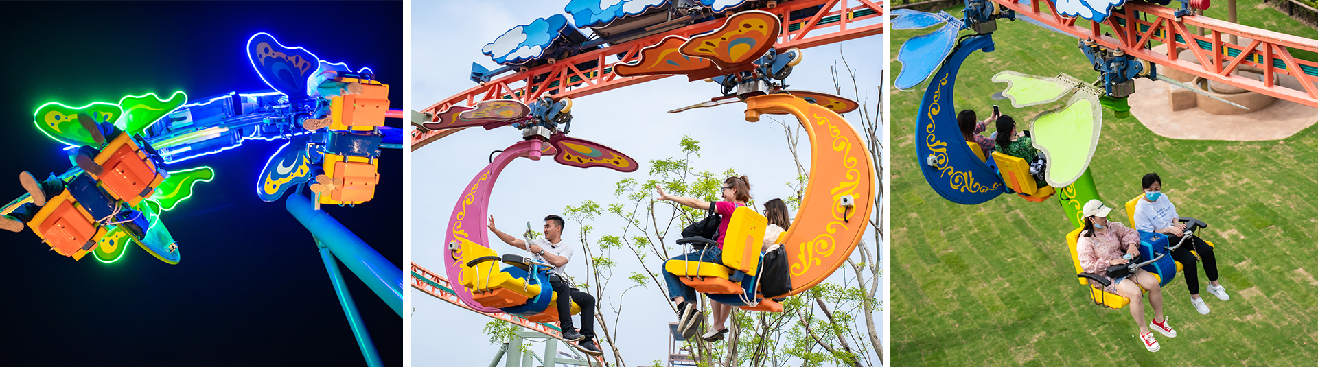 攬?游覽?以?亮為造型,?卡在??電機驅(qū)動下沿?平路軌??并帶動?卡兩側(cè)的翅膀扇動,運動?式獨特,外觀吸睛。同時懸掛的座艙可由乘 客通過?動搖桿控制旋轉(zhuǎn),增加游客操控趣味性。