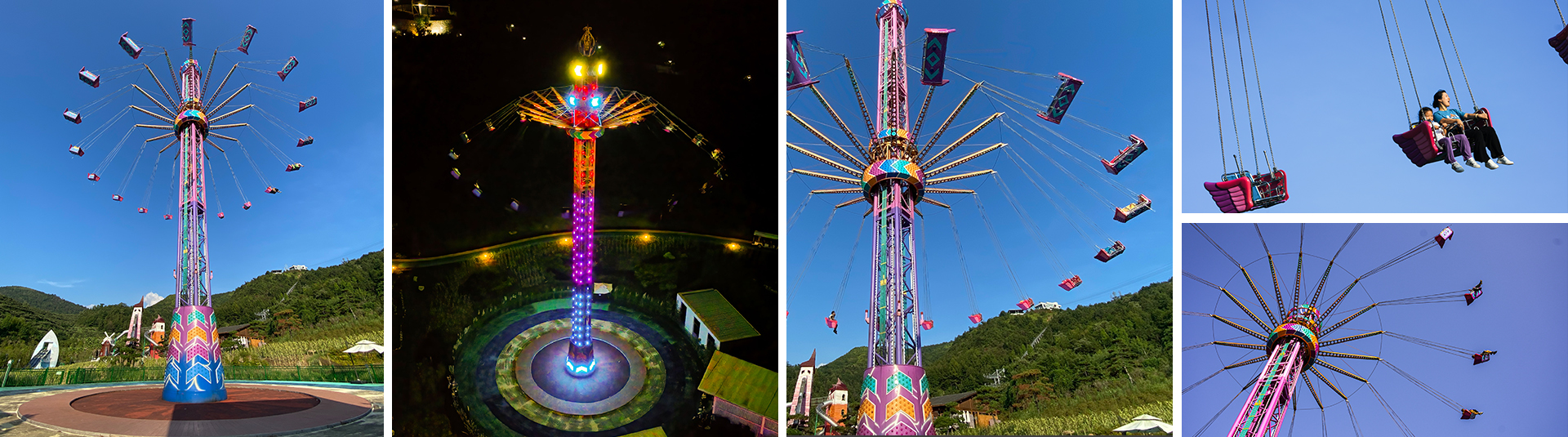 飛行塔設(shè)備由塔體、滑?架、吊椅三部分組成。獨(dú)有雙人座椅設(shè)計(jì),隨著速率越來(lái)越快,座椅在半空中向外飄散,在整個(gè)游玩過(guò)程中乘客可充分享受高速飛行的暢快,刺激又浪漫。