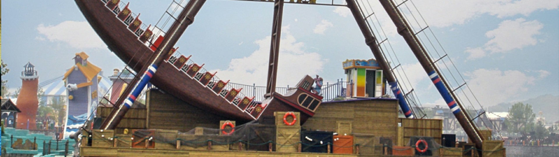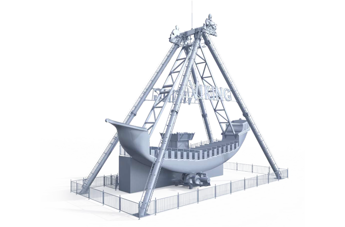 海盜船繞水平軸來回?cái)[動(dòng),模擬海盜乘風(fēng)出海的場(chǎng)景,交替而至的失重和超重感讓乘客盡情體驗(yàn)搖擺的樂趣。16排座椅,承載96人。