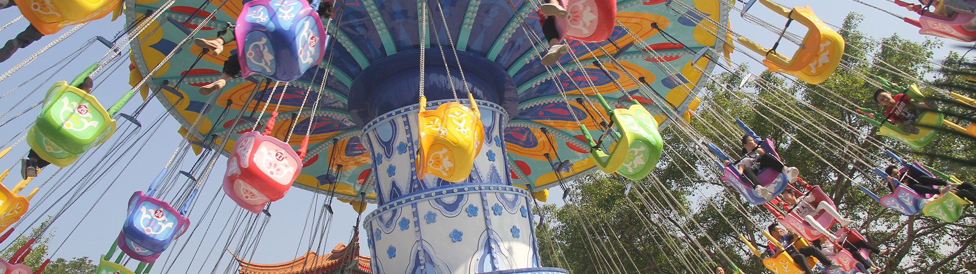 颶風(fēng)飛椅設(shè)備通過(guò)傘形轉(zhuǎn)盤(pán)的旋轉(zhuǎn)和中間轉(zhuǎn)臺(tái)的錯(cuò)位旋轉(zhuǎn),實(shí)現(xiàn)飛椅的波浪式運(yùn)動(dòng),乘客猶如在空中自由飛翔飄蕩。
