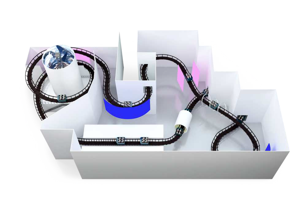 互動(dòng)軌道?是?款室內(nèi)休閑游樂設(shè)備,將3D交互游戲和過??兩種元素有機(jī)結(jié)合,乘客在游玩過程中既能體驗(yàn)3D?體的主題視覺效果,?能體驗(yàn)過??刺激,還互動(dòng)參與激烈的射擊競賽,是?款新穎的架空游覽?項(xiàng)?。