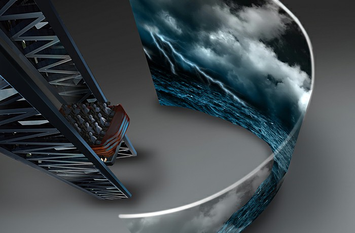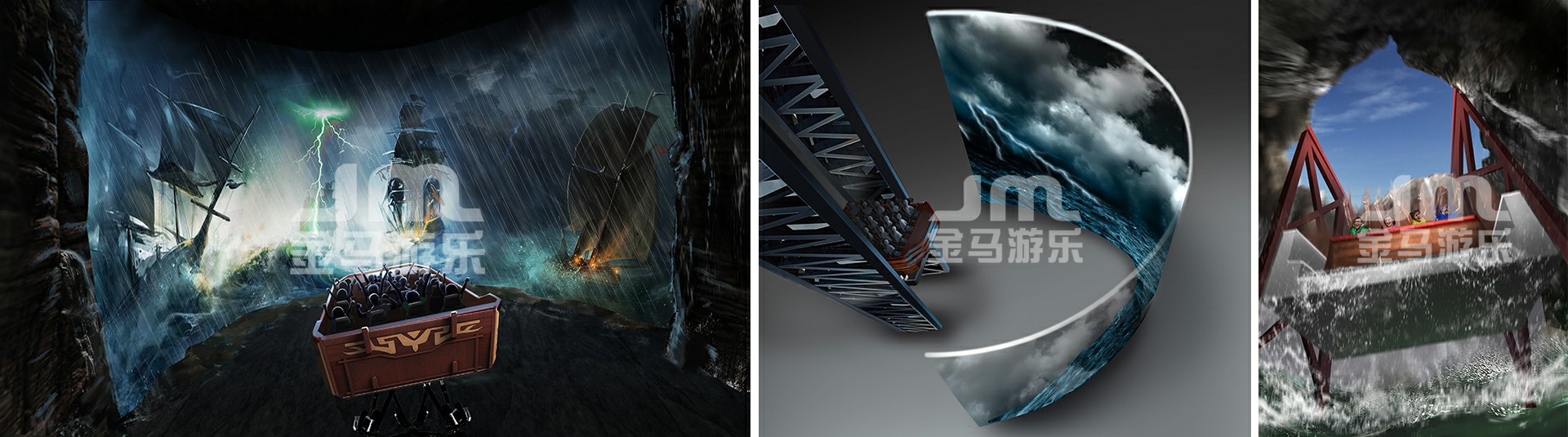 本項(xiàng)目由傳統(tǒng)的激流勇進(jìn)與影視元素相結(jié)合,船體造型新穎,此項(xiàng)目的車體運(yùn)行設(shè)有俯沖、傾斜、速降等元素,讓游客沉浸于驚險(xiǎn)刺激的游樂體驗(yàn)中。