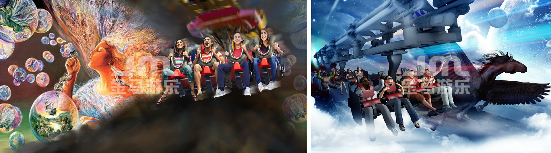 自帶動(dòng)力的懸掛式過(guò)山車實(shí)現(xiàn)了在軌道任意位置變換速度,時(shí)速可高達(dá)32km/h,在高清電影、科技特效的影視相融合下,使乘客完全沉浸在游戲的樂(lè)趣和刺激中