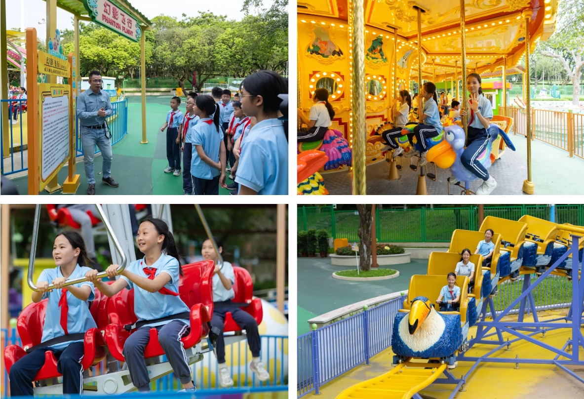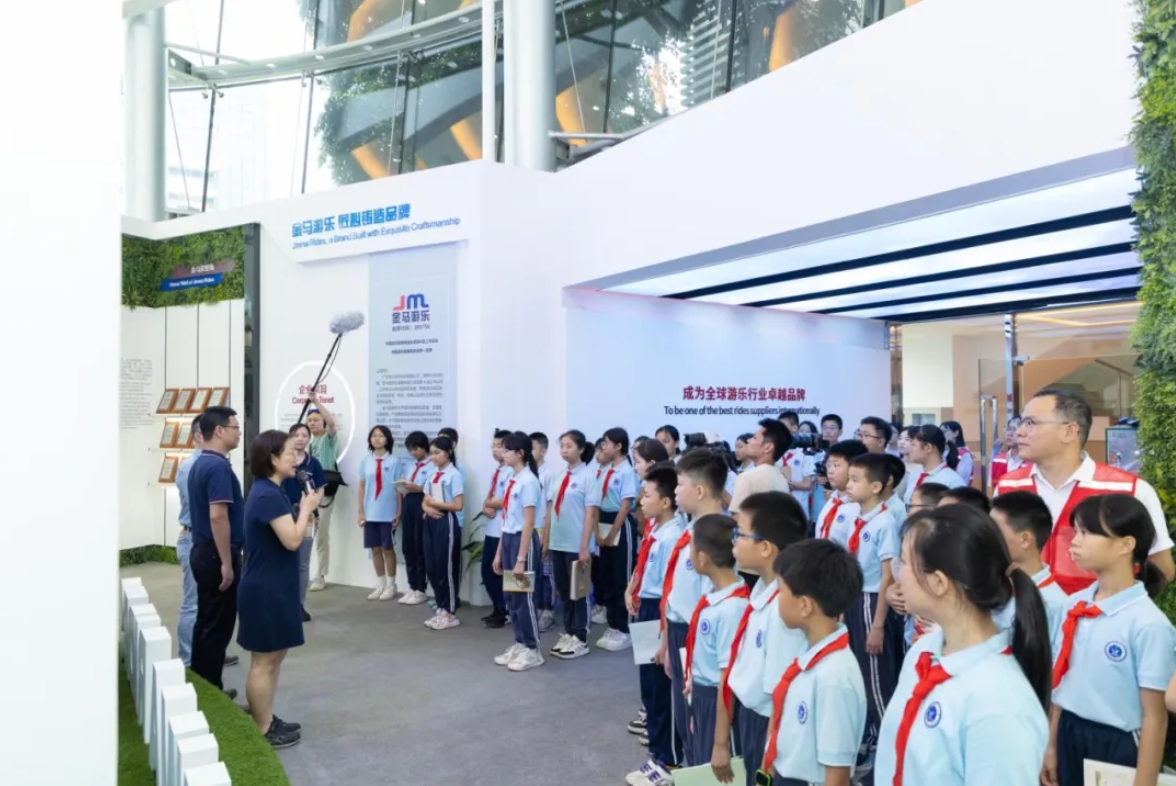 活動期間,中國特種設(shè)備檢測研究院游樂設(shè)施與客運索道專業(yè)人員、中山市游戲游藝行業(yè)協(xié)會秘書長雷嘉詠帶領(lǐng)中山市港口鎮(zhèn)中心小學學生到訪金馬游樂開展了實地參觀。
