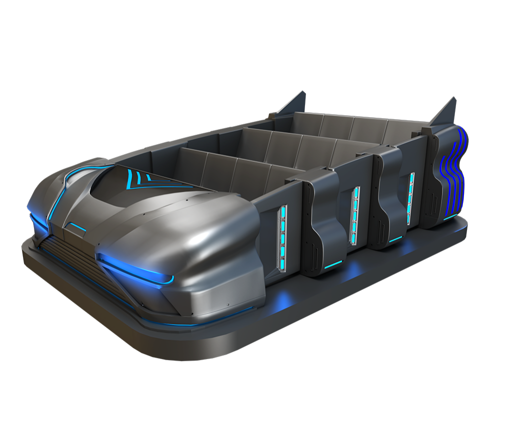 車體設(shè)計上,車輛結(jié)構(gòu)輕巧、緊湊(承載人數(shù)12人/車),行走軌跡可隨意設(shè)定,且轉(zhuǎn)彎半徑小,可實現(xiàn)直角轉(zhuǎn)彎;車輛外觀富有科技感的配色及戰(zhàn)船造型,搭配炫彩的科技藍(lán)燈帶,貼合項目主題,營造滿滿的沉浸式科技氛圍。